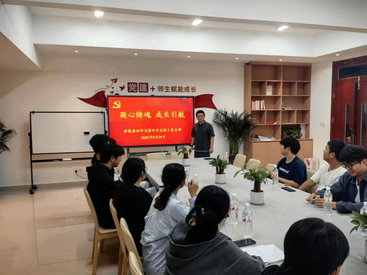 为开阔学生学术视野,促进学术交流,9 月 29 日下午在滨湖校区学院一站式社区,物理与材料工程学院新能源材料与器件专业教工党支部与学生党支部联合举办“凝心铸魂,成长引航”学术报告,新能源材料与器件专业学生代表参加 。