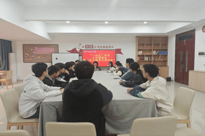为进一步深化“一站式”学生社区建设,畅通师生沟通渠道,精准解决学生发展中的实际问题,4月22日,物理与材料工程学院在“一站式”学生社区举办社区工作推进会暨 “我与书记面对面”活动。学院副书记夏文玲、辅导员沙从浩、学生代表参加会议,会议由沙从浩主持。