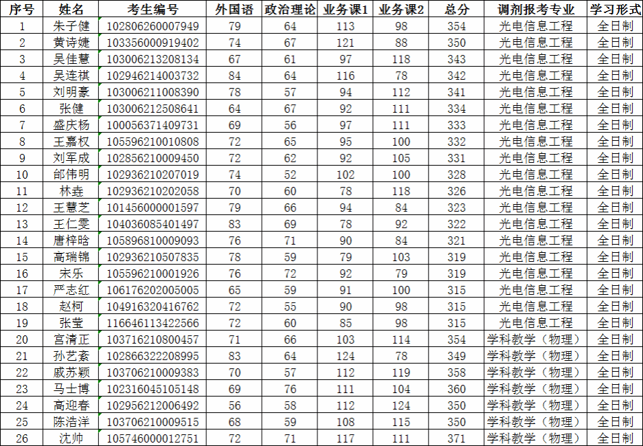 合肥师范学院物理与材料工程学院2026年硕士研究生招生第一轮调剂拟录取结果
